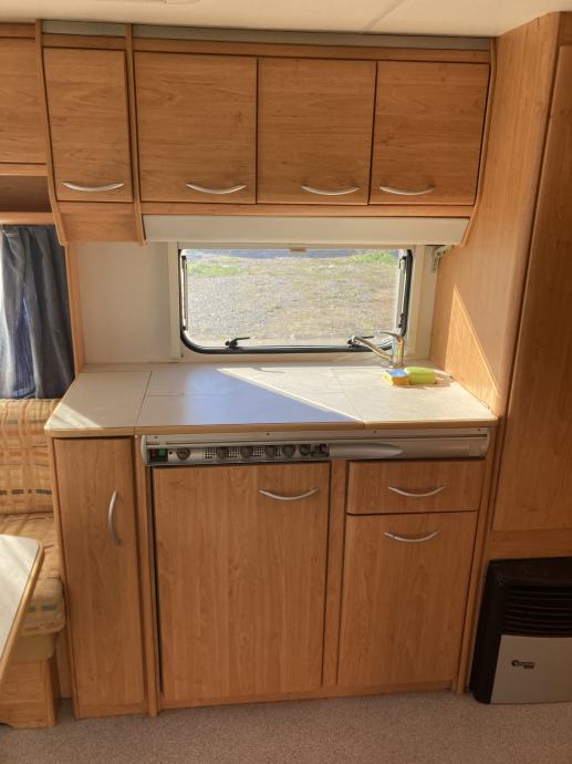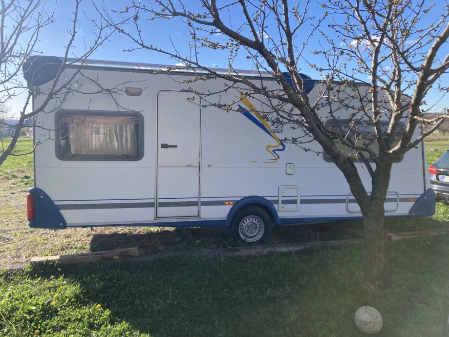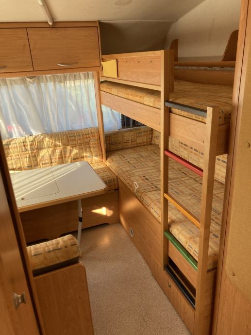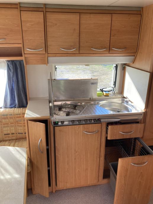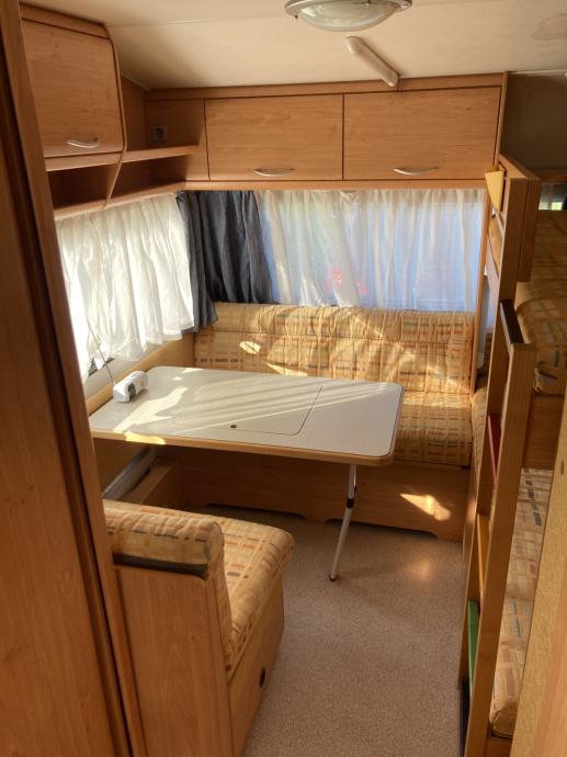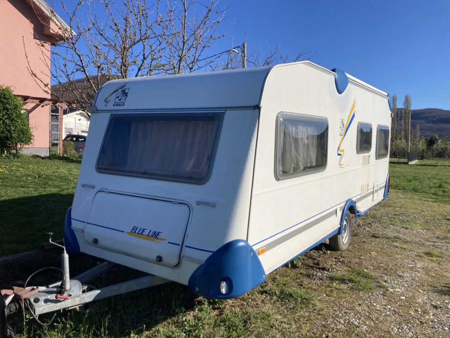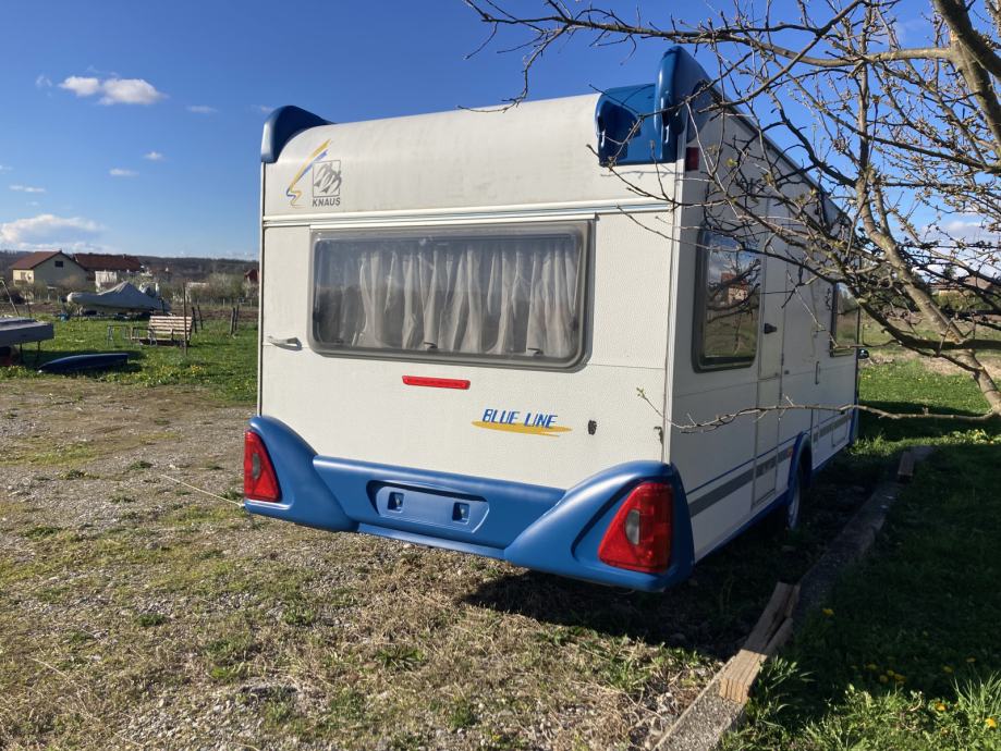 Prodajem kamp prikolicu bez mogućnosti registracije, za stacionar ili parcelu. Knaus tk 550 Blue line. Radi se o velikoj, komfornoj prikolici širine 2,25 m . Godina proizvodnje cca 2001. Prikolica je u dobrom stanju, očuvana, uredna, kao nova, suha. Većinu vremena provela je ispod nadstrešnice. Ima posebnu sobu sa krevetom na kat i sjedećim garniturom koja može biti i bračni ležaj. U salonu je još dodatni veliki bračni krevet. Na svim prozorima, vratima i Šiberu su komarnici i rolete za zatamnjivanje. Ima kupaonu sa wc-om. Struja 220 v ( i frižider ) sve radi, dok 12V bi trebalo pogledati jer je struja negdje u prekidu. Plin nisam probao, ali mislim da radi. Prodajem zbog promjene planova za 3900 Eur