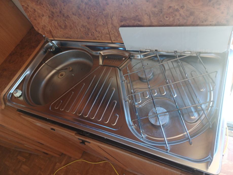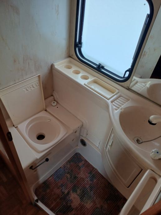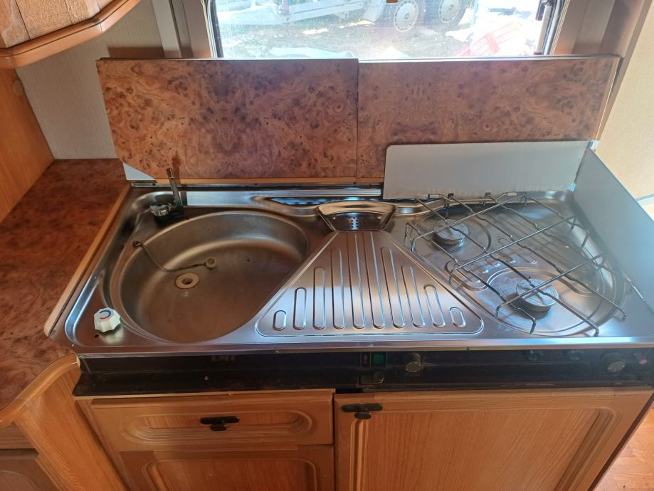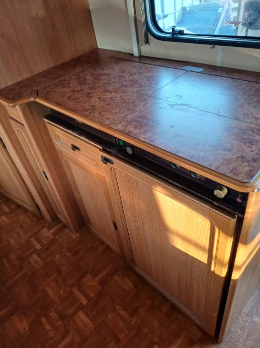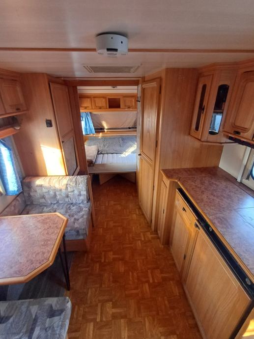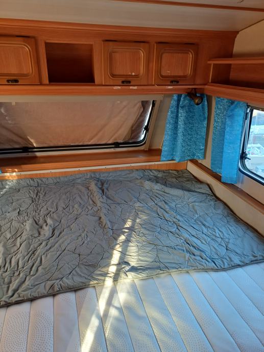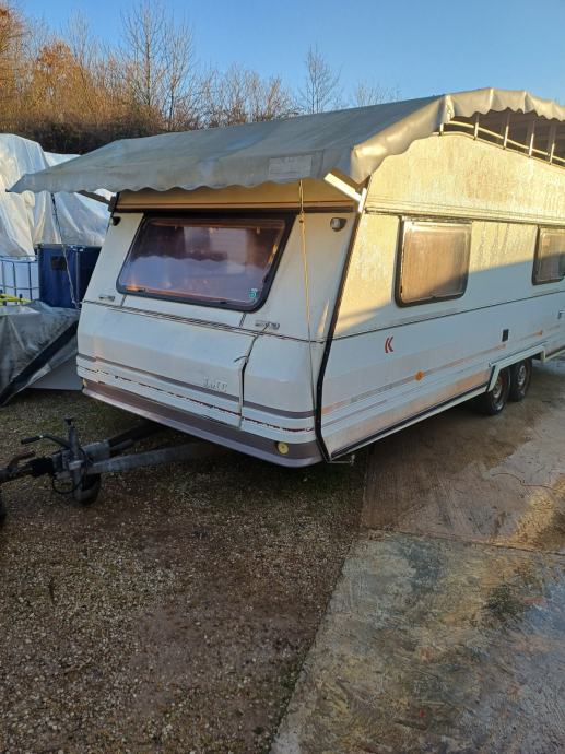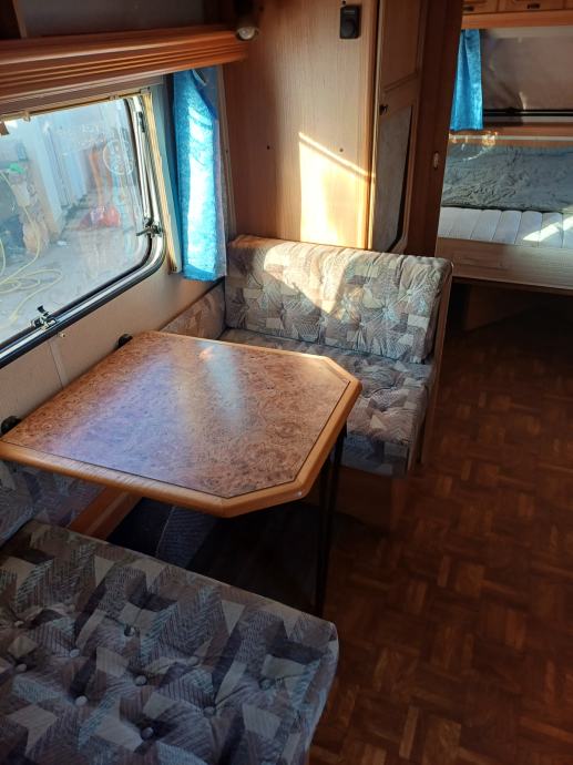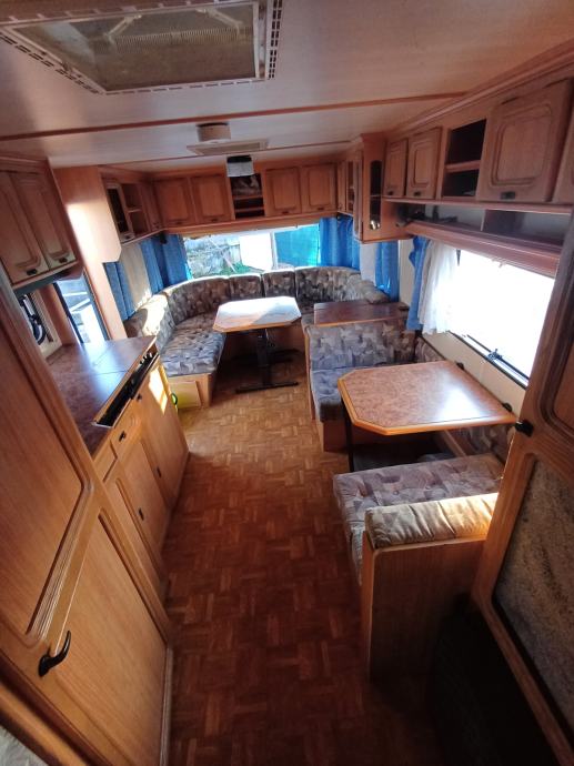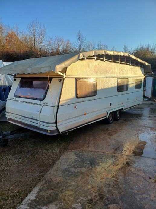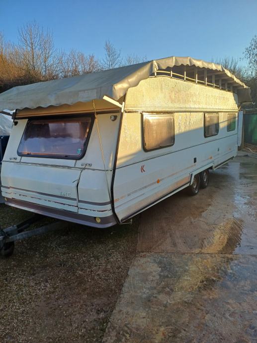 Kamp prikolica dužine 660 cm u prikolici ima 2+2+1 lezaja za spavanje, kemijski wc, kuhinja sa opremom predsator u dobrom stanju. Iznad prikolice je montiran orginal alu krov koji štiti od sunca i kiše.