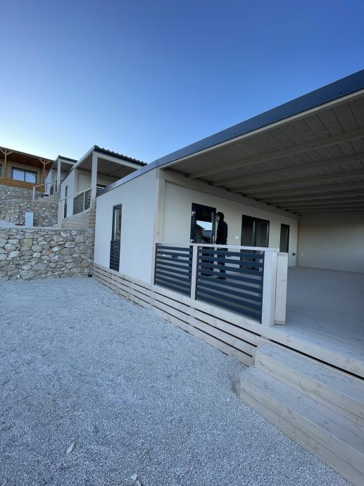 Mobilne kućice u dimenziji 8,5m x 4m, sa terasom u istoj dimenziji nalazit če se cca 200 m od mora. Kapacitet kućice bit če 4+2 osebe, imat če dvije spavače sobe i dva kupatila. Kuhinja če biti opremljena sa velikim hladnjakom, steklokeramičkom plinskom pločom, napom i perilicom posuđa. Sve kućice čeju imati električki bojler, klimu (A/C), TV i perilicu rublja. Sva bijela tehnika imat če 2-5 godina garancije.