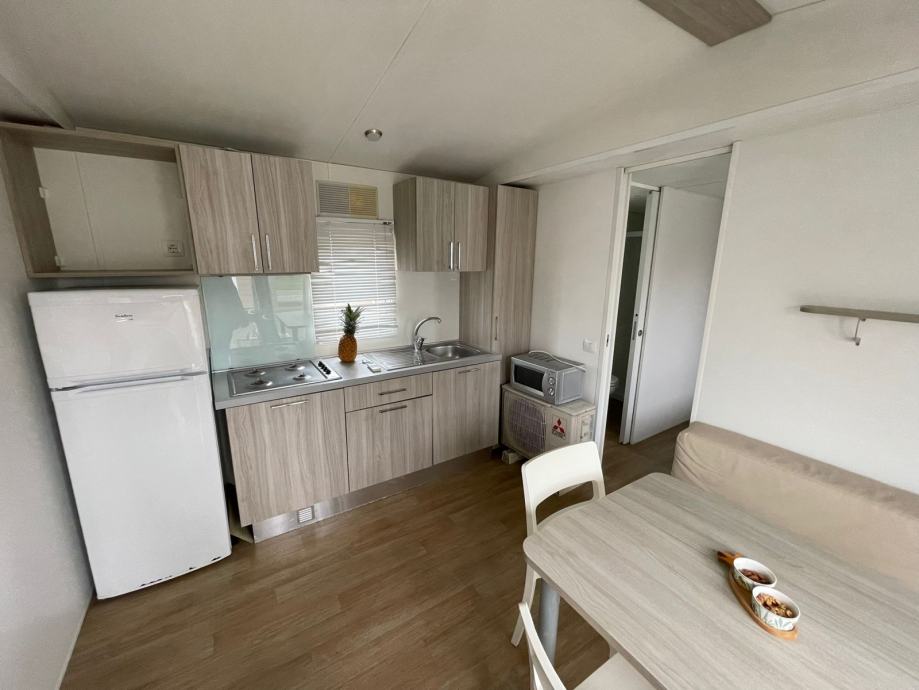 Mobilne kućice imaju dvije spavaće sobe , 1x WC , kupaona, kuhinju sa dnevnim boravkom .