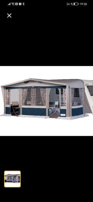 Prodajem predšator za kamp prikolicu Eurotenda Linea sa kompletnim priborom, korišten vrlo malo na prikolici Adria 430 (koja je bila visine 2.4 m i duljine 5.6 m) , u odličnom stanju.