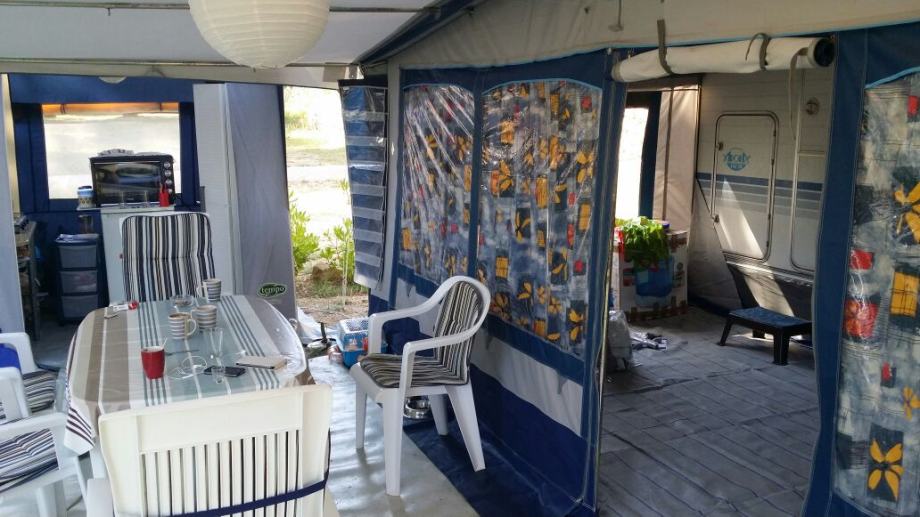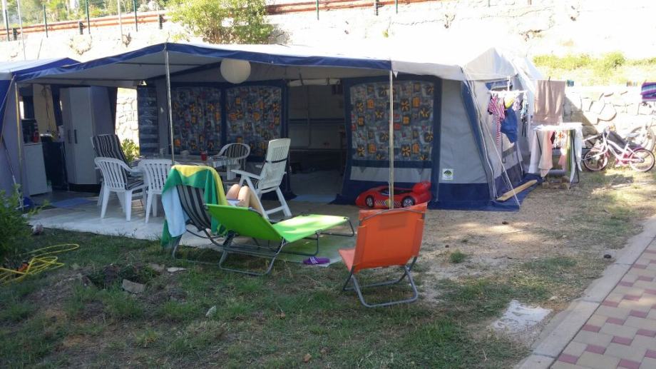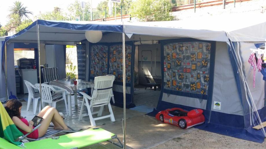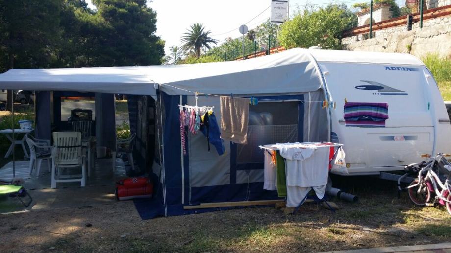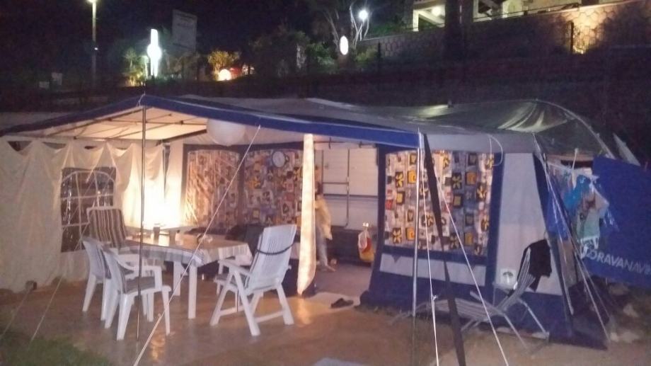 Predsator sa dodatnom tendom marke camp ing jako uscuvana,za kamp prikolicu duzine 5,60 prodajem,cijena 3000 kn