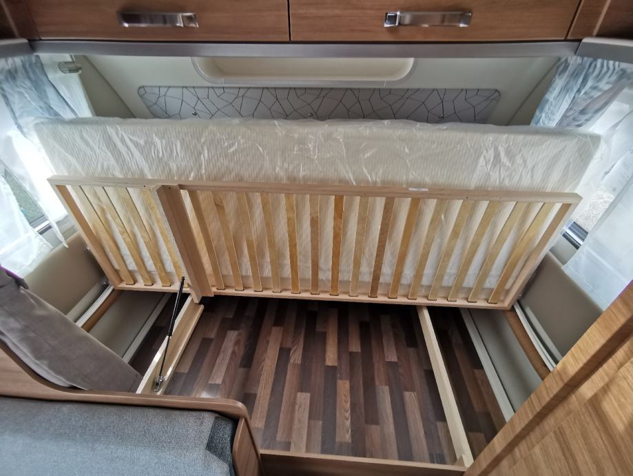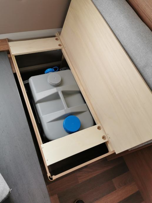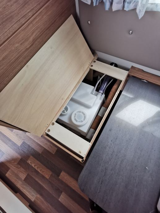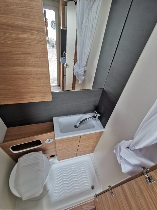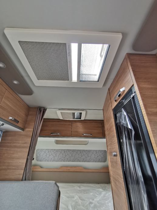 Advanced paket - krovni prozor Midi-Heki 70 x 50 cm, dovod tople vode Truma s priključkom za kuhinju / WC, mreža protiv inskekata na ulaznim vratima ,Tuš nastavak za kupaonicu,Spremnik otpadne vode 25 litara, pokretni