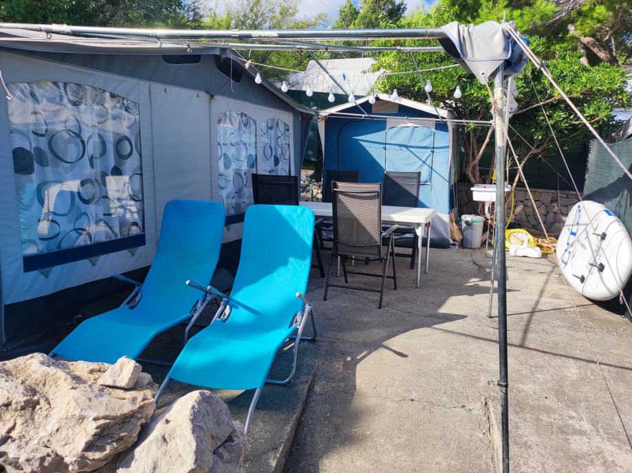 Prodajem prikolicu sa svom opremom na parceli u autokampu Tiha u Šilu, otok Krk.