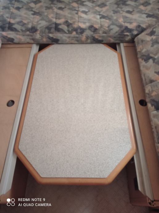 Prodajem stolić za kamp prikolicu ,dimenzije 104x64,kad se spusti služi za ležaj,a kad se podigne kao stol,može se iznijeti i van,lagano.Kao novo.Zvati na mob. 0977845088