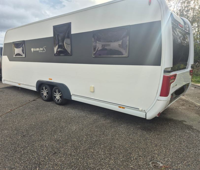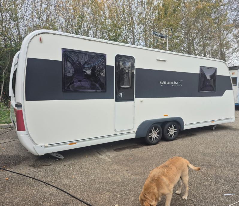 Prodaje se kamp prikolica Sublim S 610,2013god( avangard klasa caravelair). Prikolica ima plinsko i elektricno grijanje,hladnjak,klima uredaj,spremnik za vodu,sva led rasvjeta plus podno vanjsko osvjetljenje. Dvd/divX player sa 3d suround sustavom. Garnitura na razvlačenje,stol takodjer na razvlacenje. Spavaca soba ,tus s odvojenim kupaonskim blokom. Sve površine u kuhinji u kaljenom staklu. Šiberi,komarnici,sjenila