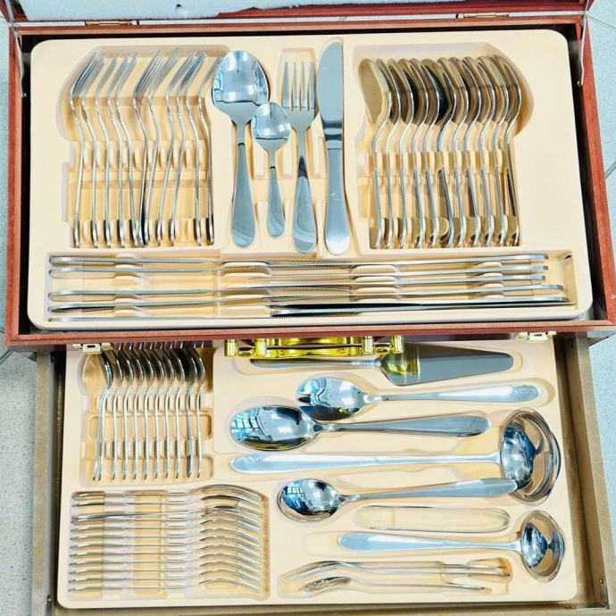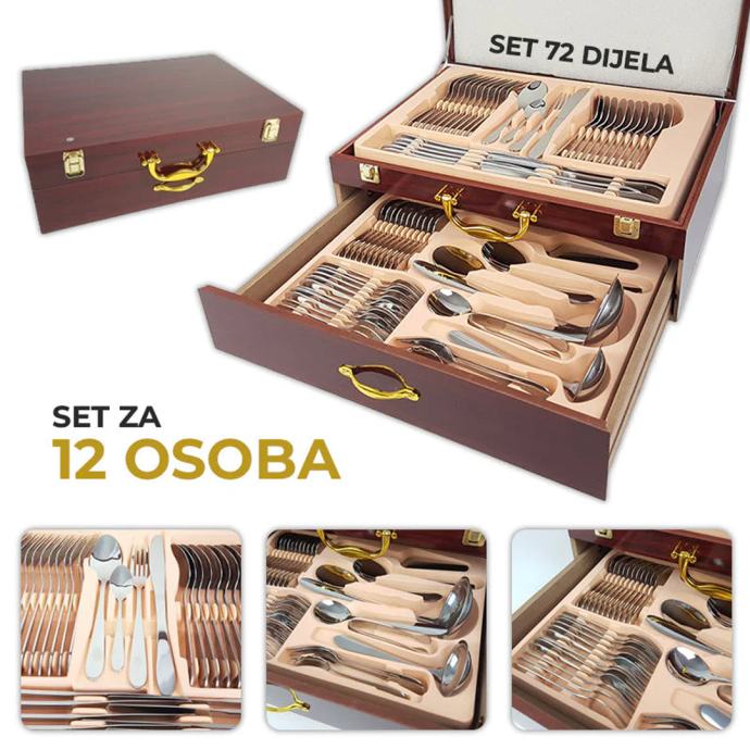 Ovaj 72-dijelni set pribora za jelo u elegantnom koferu je savršen za sve prilike, od svečanih večera do svakodnevnih obroka.