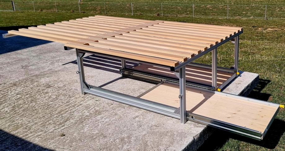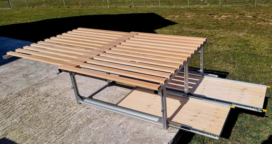Dimenzije razvučenog modula; širina 116 cm, dubina 199 cm.