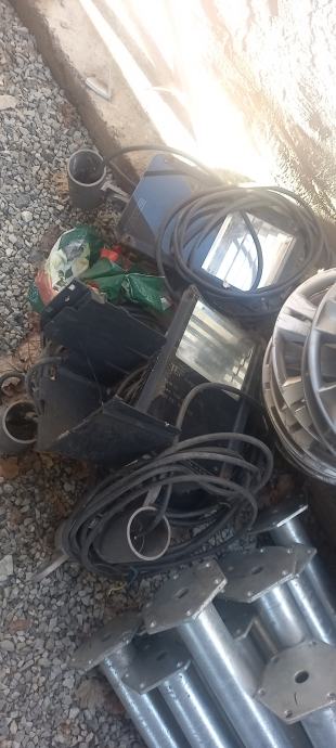 Pocinčani stupovi koji mogu služiti za rasvjetu kampa,placa,gradilišta...komplet s kablovima i reflektorima.