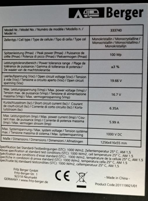 Prodajem Berger solarni panel 100w korišten na kamperu.