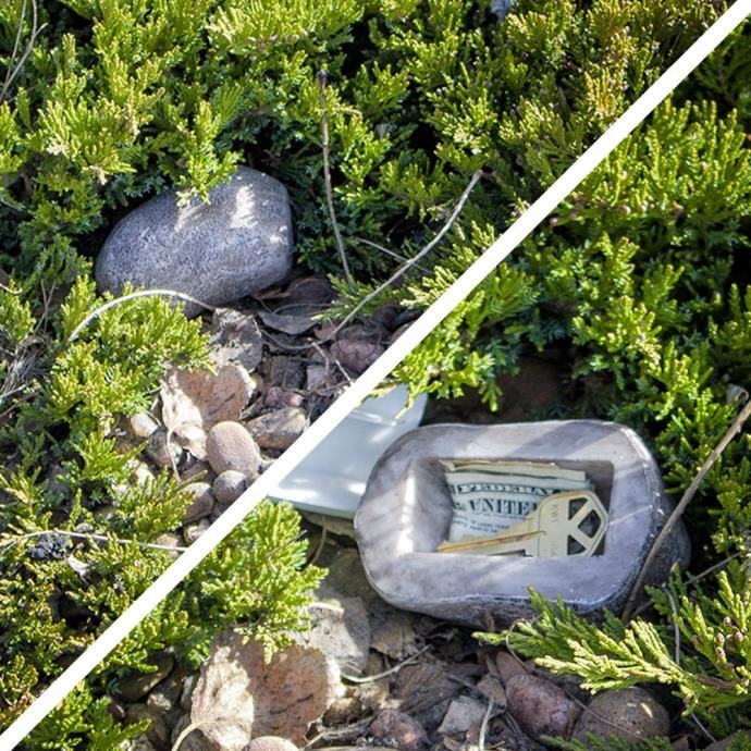 Lažni, šuplji kamen za skrivanje rezervnih ključeva oko kuće
