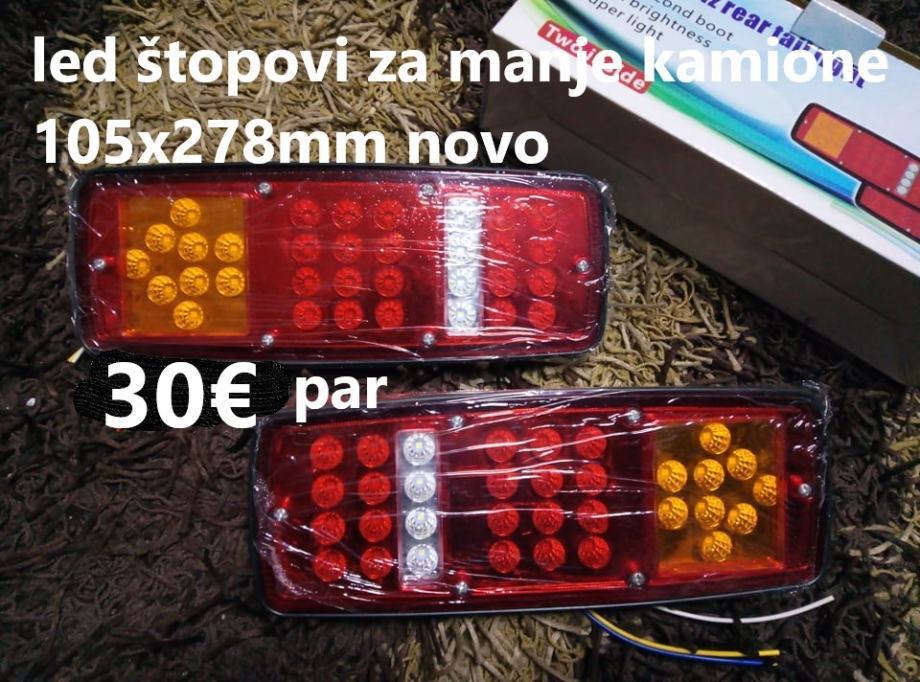 prodajem nova led stop svijetla za manje kamione prikolice i slicno dimenzije 105x278mm novo izvadeno iz kutije samo za slikanje cijena 30€ par fixno