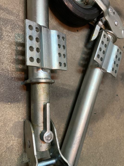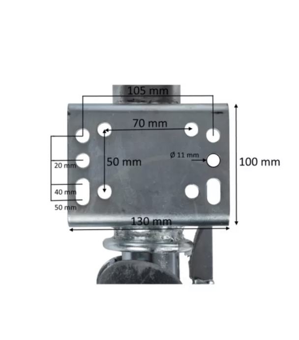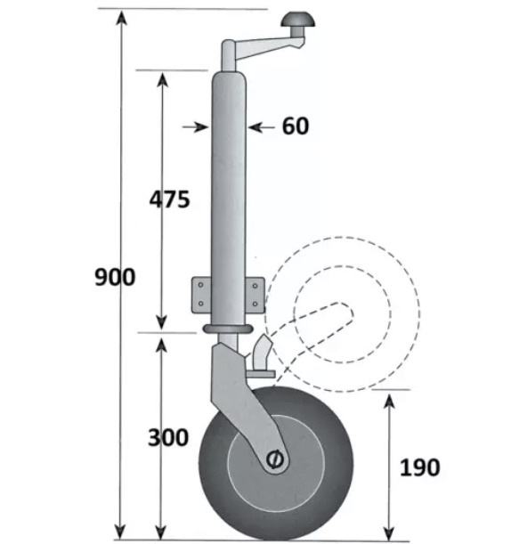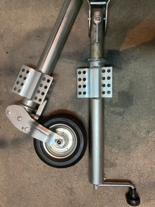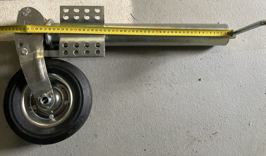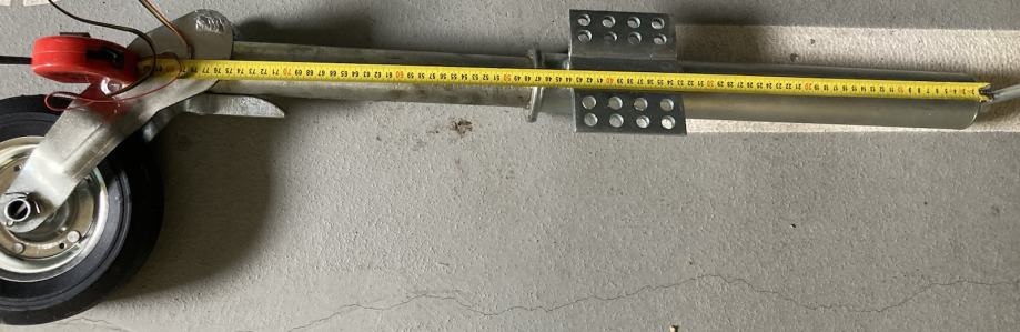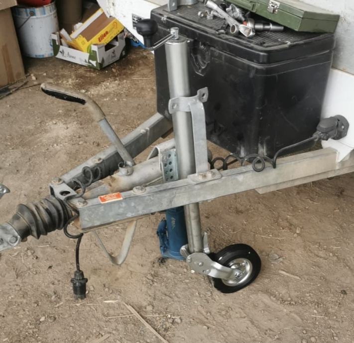 Dimenzije samog kotača: Ø 200 x 60 mm, vreteno s potisnim ležajem čelični obod i čelična cijev debelih stijenki promjera 60 mm. Nosivost vučne šipke je 400 kg sa stabilnim vretenom i polugom. Vreteno se može odvrnuti do 290 mm koje na sebi ima mazalicu, a kotač od čvrste gume s pocinčanim ostatkom konstrukcije.