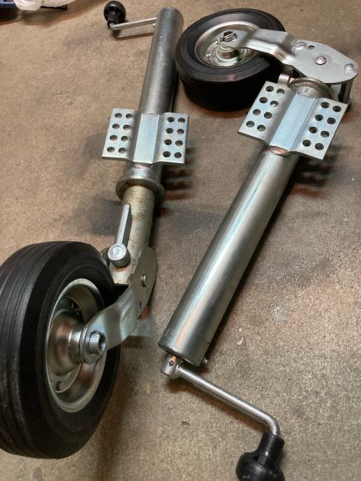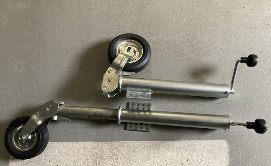 Prodajem novi potporni automatski upravljački sklopivi kotač za priključno vozilo Ø 60 mm s nosivim opterećenjem čeličnog naplatka od 250 kg.