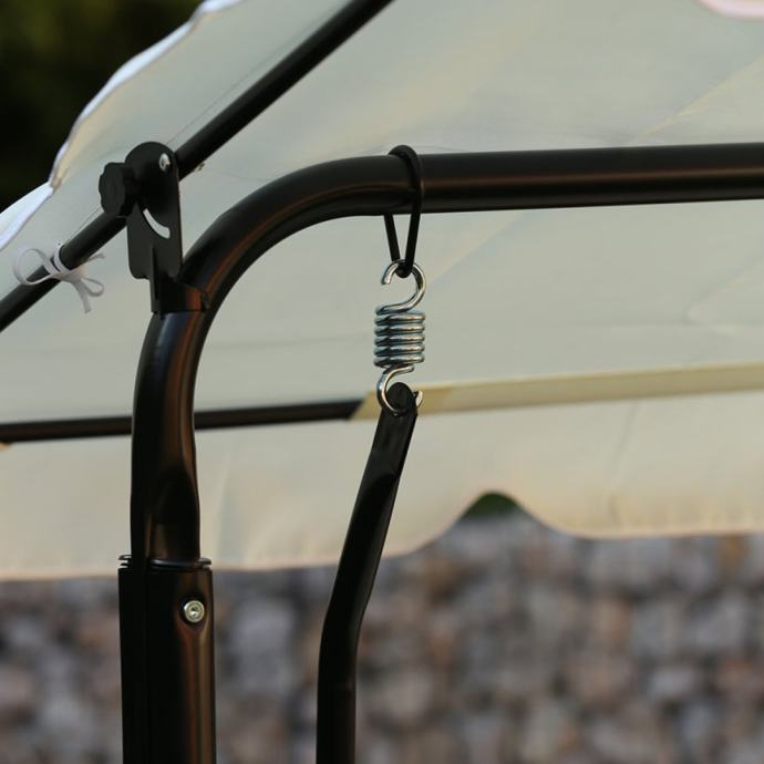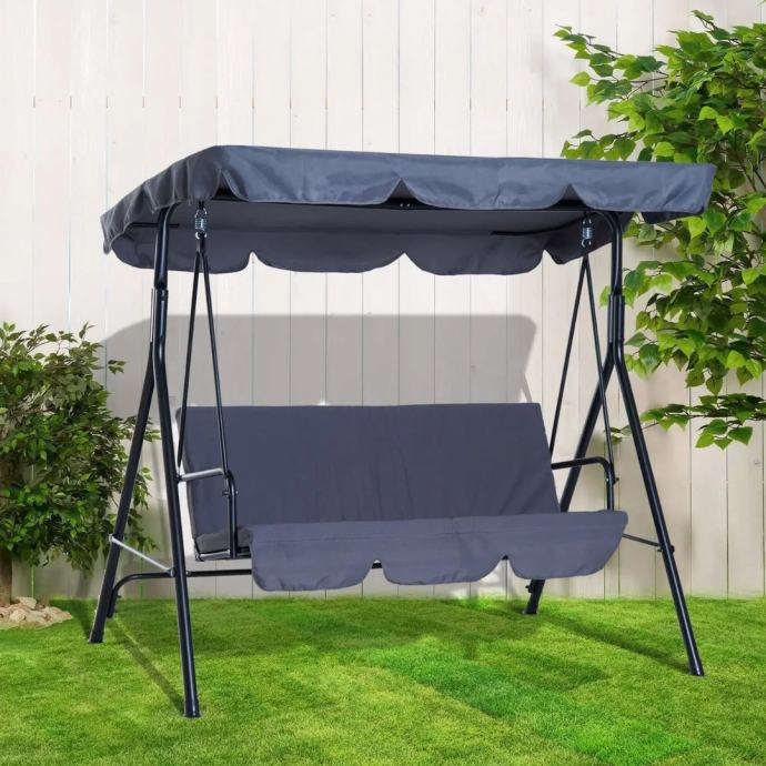Ova ljuljačka idealna je za opuštanje na vašem dvorištu ili terasi. S podesivom nadstrešnicom koja pruža dodatnu zaštitu od sunca, omogućava uživanje u svim vremenskim uvjetima. Uklonjivi jastuci dodatno povećavaju udobnost, a komplet uključuje sve potrebne spojnice, vijke i opruge za jednostavnu montažu.