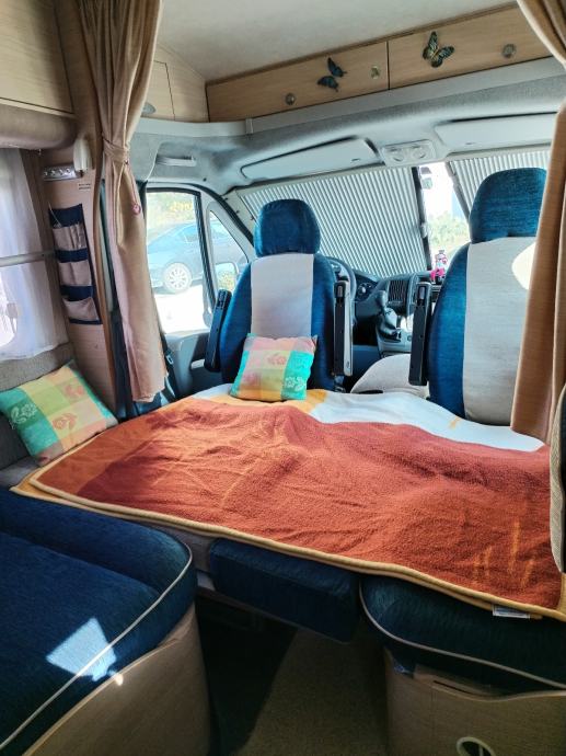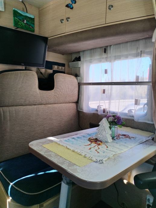 Klima, solarni panel, alarm i sigurnosne brave protiv provale. 2 + 1 ležaj. Truma plinski bojler za centralno grijanje i toplu vodu. Gume zimske firestone. Omnistor tenda. Nije uvoz, prodaje vlasnik, privatna osoba. Korišten za vlastite potrebe i nije bio nikada u iznajmljivanju. Praktičan za parkiranje u gradovima jer stane na normalno parking mjesto. Kamper je sačuvan i u odličnom stanju. I ima puno ručno rađenih dodatnih pretinaca i dodatno razvedenih utičnih mjesta za struju. Uz kamper dajem i svu popratnu opremu. Tepihe stol stolice, kompletni inventar za kuhinju od posuđa do bešteka. Ima još toga jako puno ali o tome osobno ako je ozbiljan kupac zainteresiran. Nema zamjene za druga vozila.
