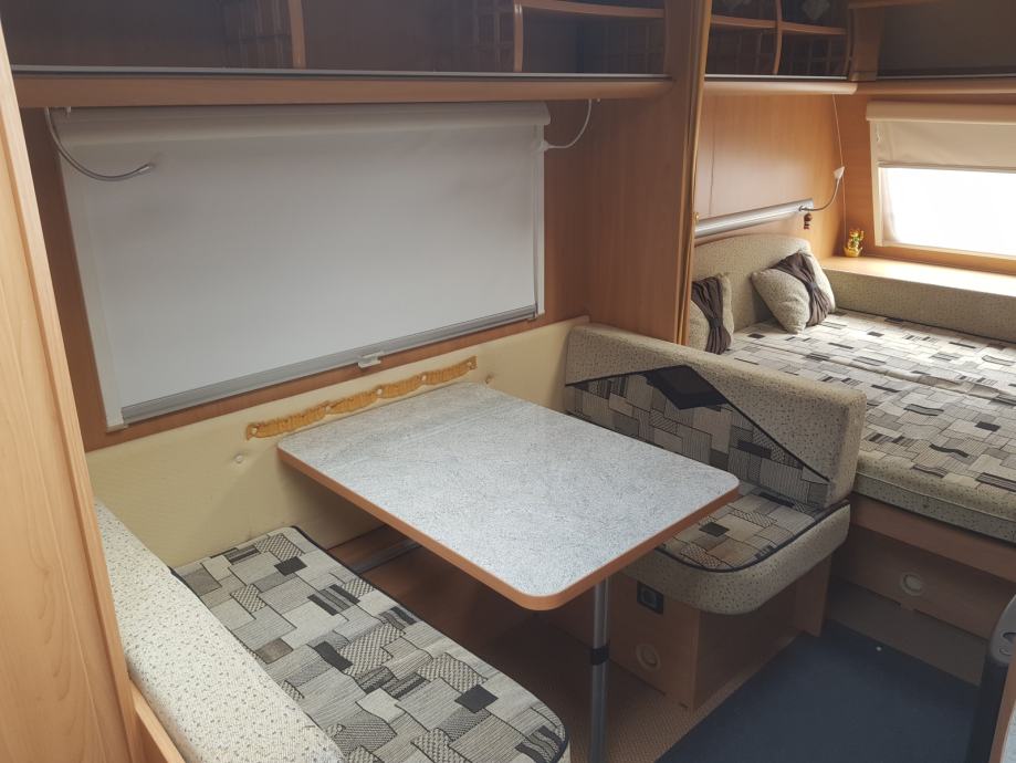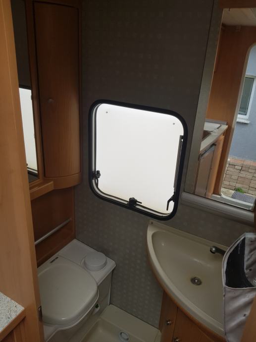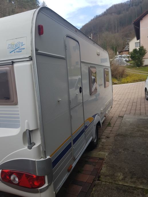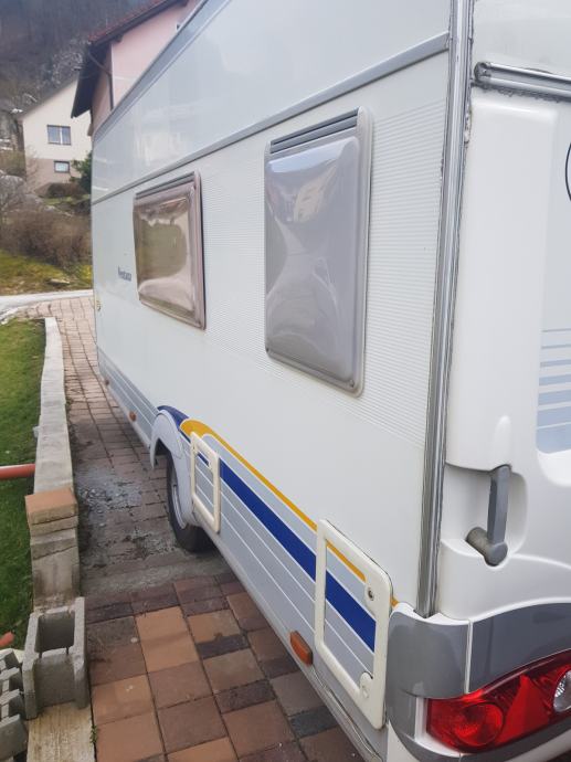 Težina same prikolice je 980 kg, a ukupna dopuštena masa vozila je 1200 kg. Prikolica Predsoblje prikolice Komarnici i rolo zavjese na svim prozorima WC s vanjskom ventilacijom Spremnik za vodu i bojler. Truma grijanje i ventilacija. Veći krovni prozor bez okvira. Unutrašnjost prikolice je dobro očuvana. Hladnjak radi normalno. Prednji krevet je 140x200, srednji je otprilike 110x170 cm i namijenjen je za 2 djece. Pogodno za obitelj s 2 djece ili par. 2003. Potvrda o kupnji vrijedi 4 godine. Kuka protiv njihanja. Duljina životnog prostora je 4,9 m. Prikolica nije bila na paušalu ali je uvijek bila vozna.
