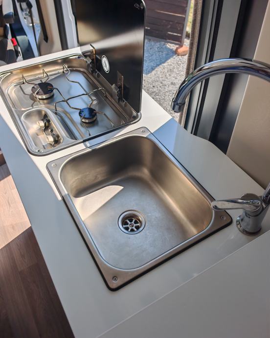 Kamper je tvornički pripremljen za putovanje i boravak za četiri osobe.