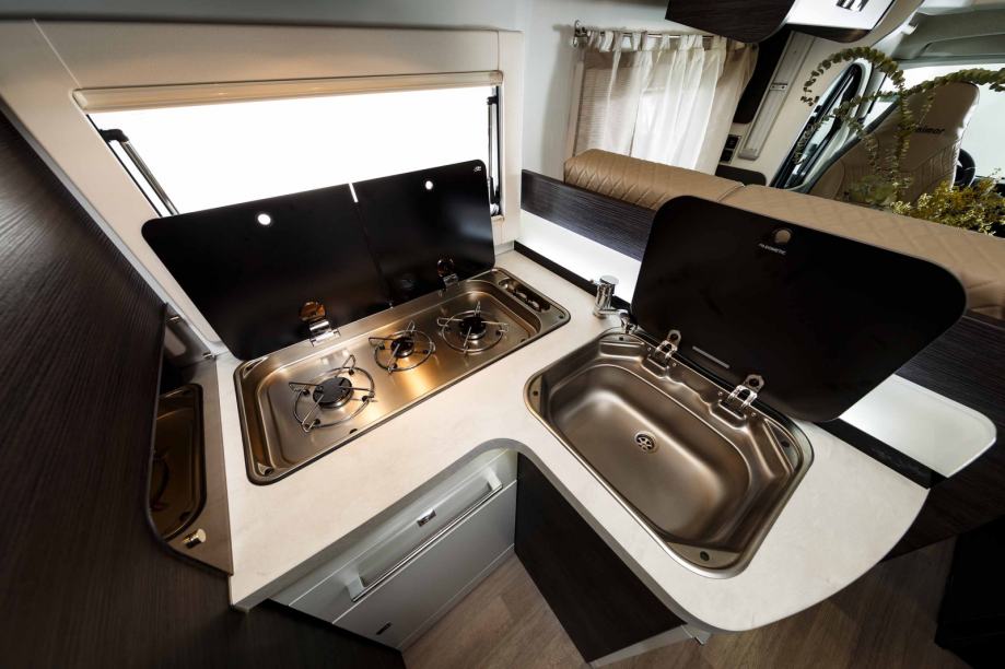 Sudoper i ploča za kuhanje s 3 plamenika i električnim paljenjem; kuhinjska napa