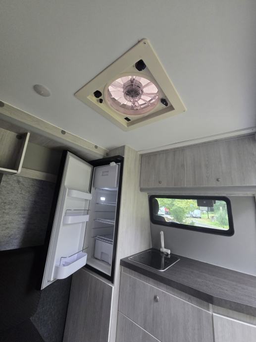 Unutrašnjost potpuno nova - solari 140w, kompresorski hladnjak 90 litara, krovni prozor sa ventilatorom , vanjsko svjetlo