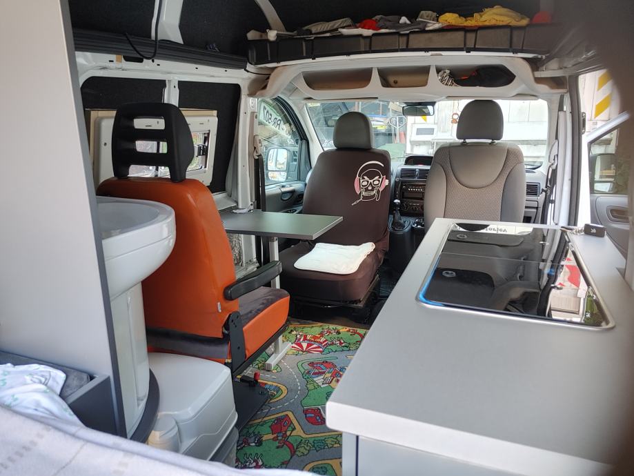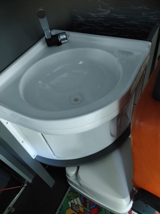 OPREMA: 3 sjedala, sva okretna sa podesivim naslonom, ima novu unutarnju klimu Sinclair (koja i grije), elektroblok, inverter, tenda FIAMMA F35PRO, 2 bočna prozora sa komarnicima i poklopcem, hladnjak sa zamrzivačem, kemijski wc, sanitarni sudoper, kuhinjski set 2x plin, sudoper, spremnik za čistu vodu, spremnik za otpadnu vodu (jednostavno pražnjenje), unutarnja baterija, krevet 170cm x 92cm/80cm, termoizolacija, 2 stola, kvalitetna satelitska brodska antena, mala vinjeta kao za osobna vozila, WEBASTO grijač 2kW na ulje, pomoćni ležaj, vanjski priključak na struju 220V, 220V iz interne baterije preko invertera.