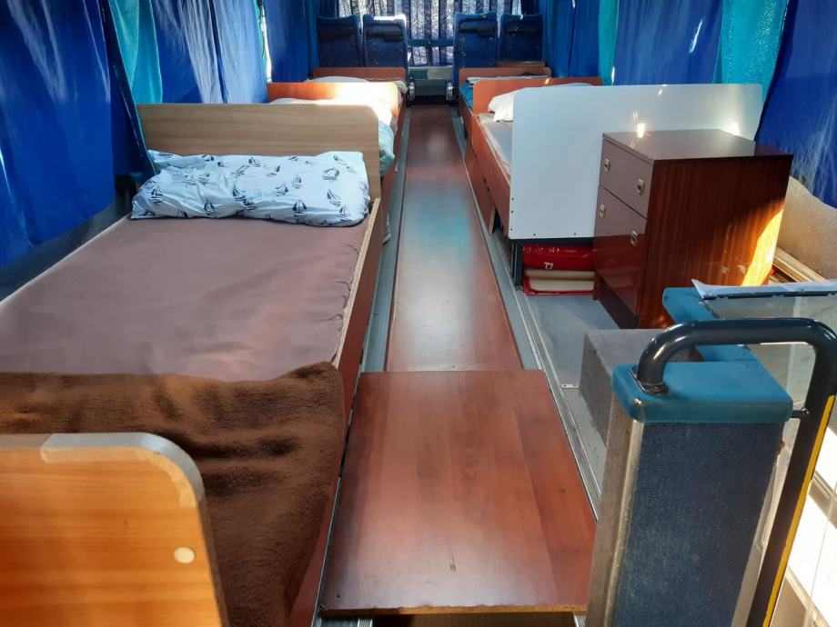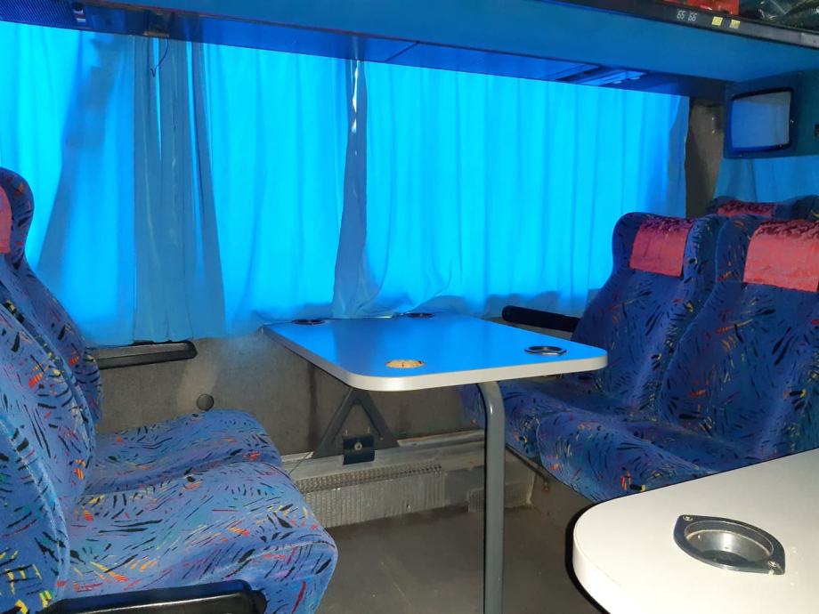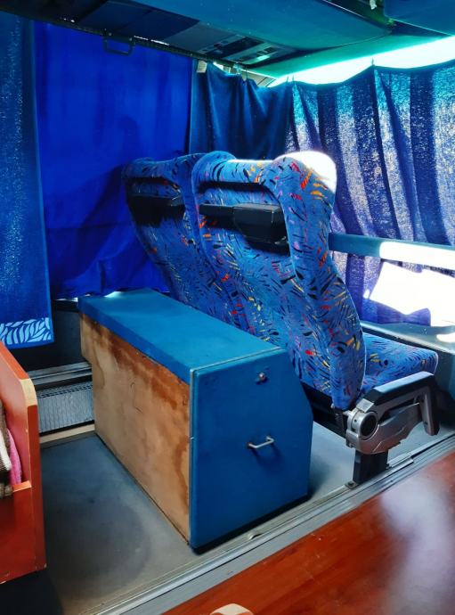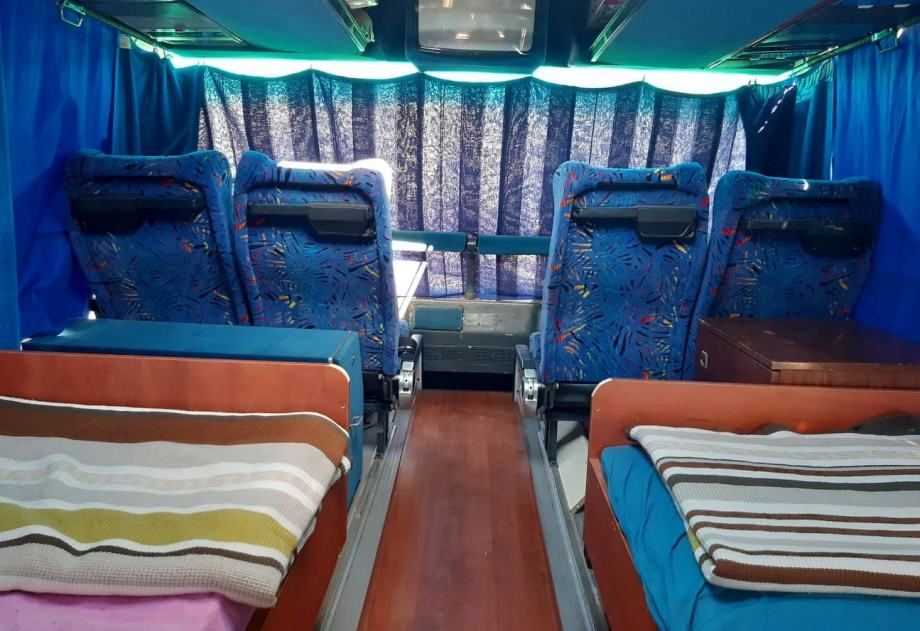 Prilikom preuređenja autobusa, prioritet je bio zadržati 20 sjedeća mjesta (za potrebe prijevoza, u trenucima kada nema potrebe za kampiranjem) i dobiti minimalno 12 ležajeva, te je sukladno tome i uređen.