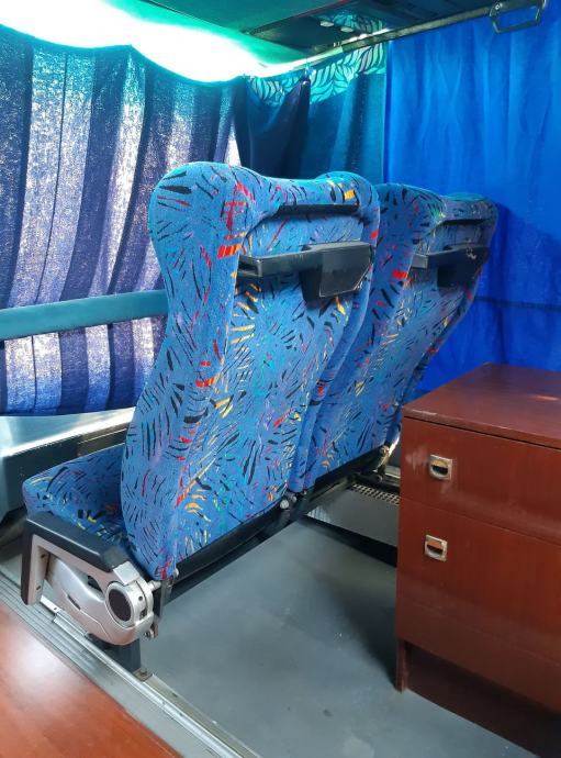 - Iza sjedala (i manjih ormarića) se nalazi 5 kreveta u nizu (3 sa vozačeve strane i 2 sa suvozačeve)