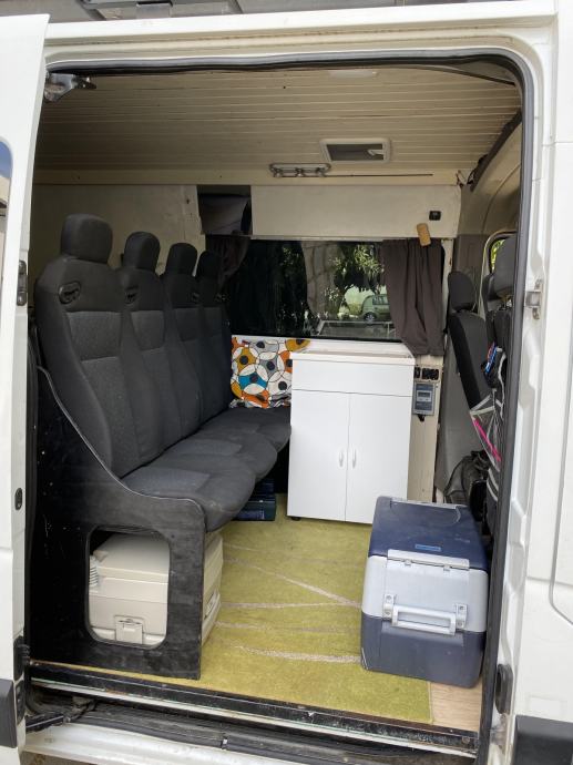 Kombi preuređen u kamper. registriran za 7 osoba kao N1 vozilo . Dobro izoliran kamena vuna , najlon zbog kondezacije sa strane i na krovu. Na krovu original podcinčani nosači samo su ofarbani u crno, škale za penjanje na krov. Krovna kutija veeelika, dva krovna prozora, sa komarnikom, kuka . Na podu stirodur 2cm i vrhunski laminat . Ima grijanje novi webasto spojeno na glavni rezervar ugradio profi stručnjak i kupljen novi. Solar i novi akumulator gel za solar 75Ah. Registrirano do 6 mj 2023, znači godinu dana. Motor 2.3 150 ks vozi odlično nedavno promijenjeni prednji amortizeri, te kočnice.