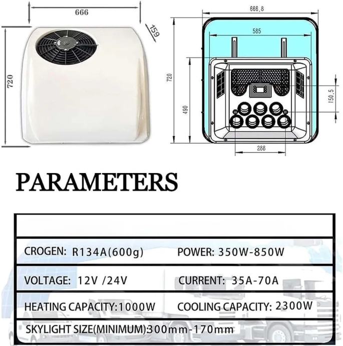 Krovna klima za ugradnju na kamper, kamp kućicu, kombi, kamion, traktor, mobilne kućice.