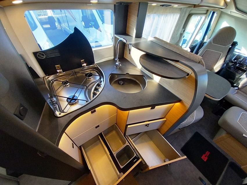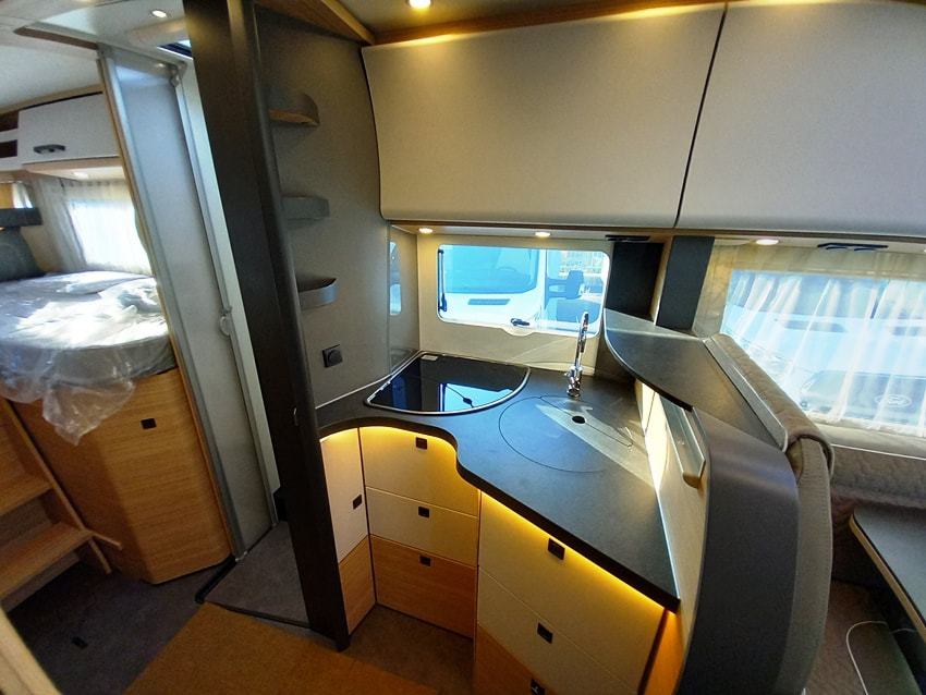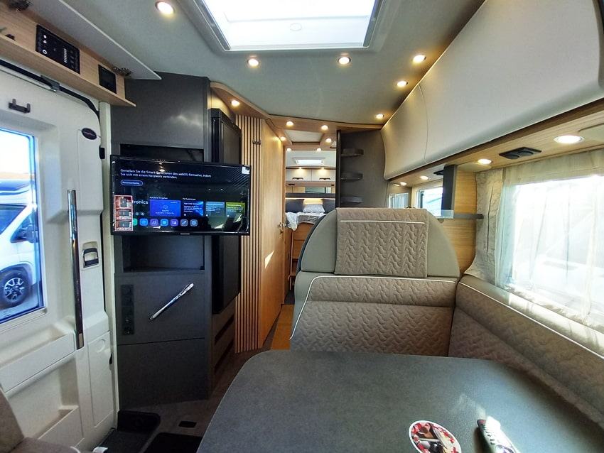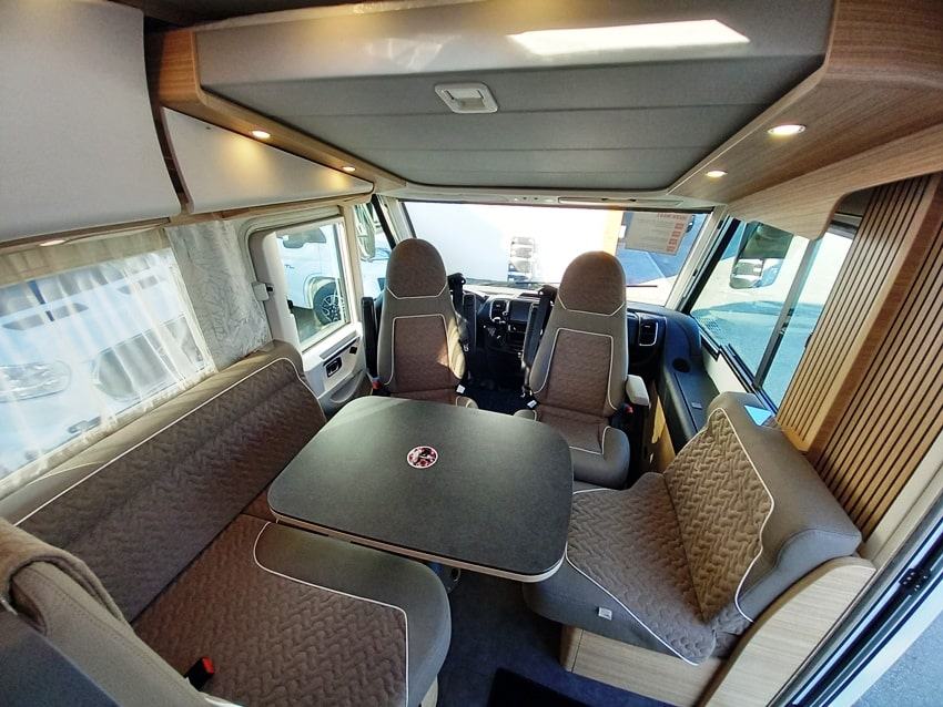 Dodatna oprema: Paket Comfort šasije za modele A-klase, paket šasije plus s automatskim mjenjačem, multimedijski paket TV 32" , paket predinstalacije, Pioneer 9" medijski centar s navigacijom, planer rute za kampere, DAB+, sjedala u kabini s podešavanjem nagiba i visine, XL "premium two 2.0" centralno zaključavanje za kabinu i vrata kabine, dodatni prostor za pohranu u dvostrukom podu, paket utičnica s dodatnim utičnicama (3 x 230 V, 2 x USB), Truma DuoControl CS sa senzorom sudara i funkcijom ice-ex, aparat za kavu s kapsulama s priključnim setom i sustavom za odvod zraka, dodatni TV priključak u spavaćoj sobi s priključnim setom, tepih u kabini, masivna drvena klizna vrata ispred spavaće sobe, Davos presvlake, posteljina i dekorativni set Malibu