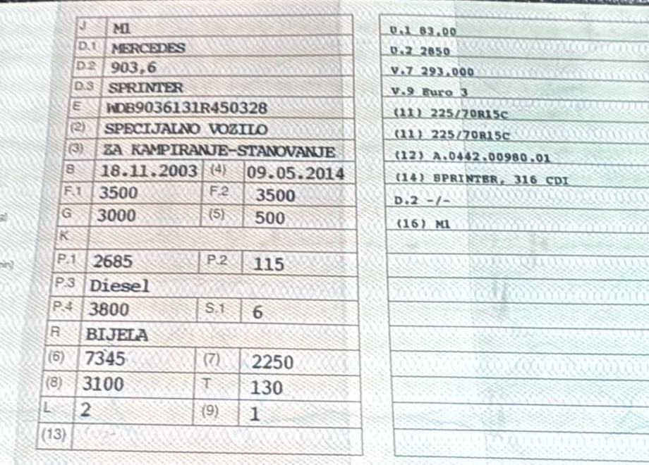RIMOR 728 Sprinter 316 CDI 2003. 6 sjedala, solarno, 154.000km ZAMJENA