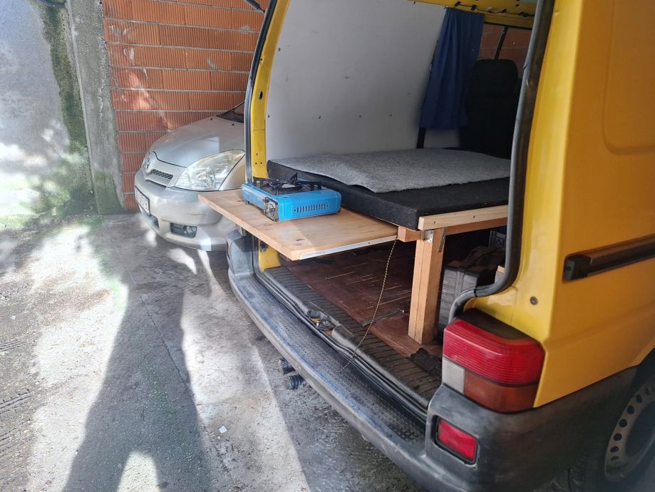 Uz kombi na poklon još dajem i drvenu platformu koja služi kao krevet kada se spusti naslon drugog reda sjedala a ispod nje stane puno stvari i ima stol na izvlacenje i plinsko kuhalo, litij-Fe servisnu bateriju spojenu preko releja koji prvo puni glavni akomulator i inverter od 650w na 220V. Inverter nije spojen jer servisnu bateriju nisam bas ni imao potrebe koristiti jer je i glavni akomulator stavljen jači (100ah) tako da sa time zajedno ima stvarno puno struje.
