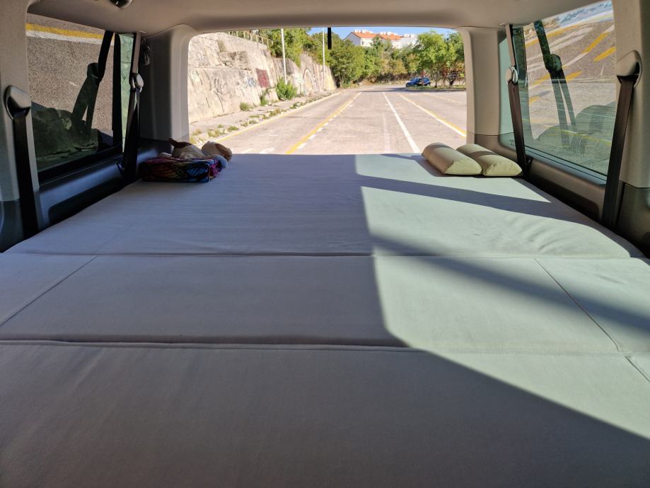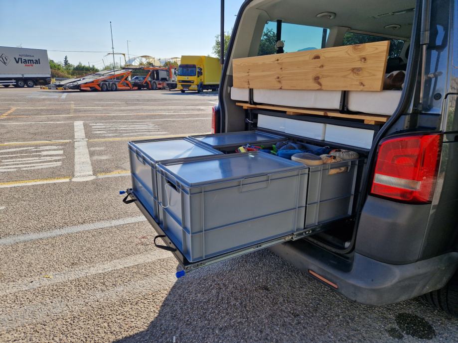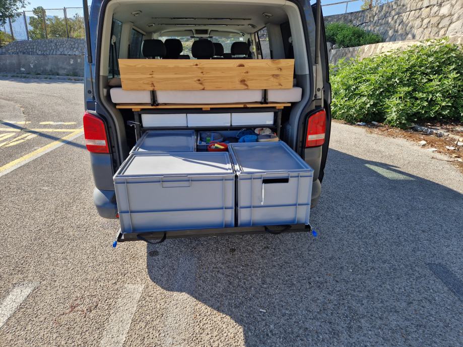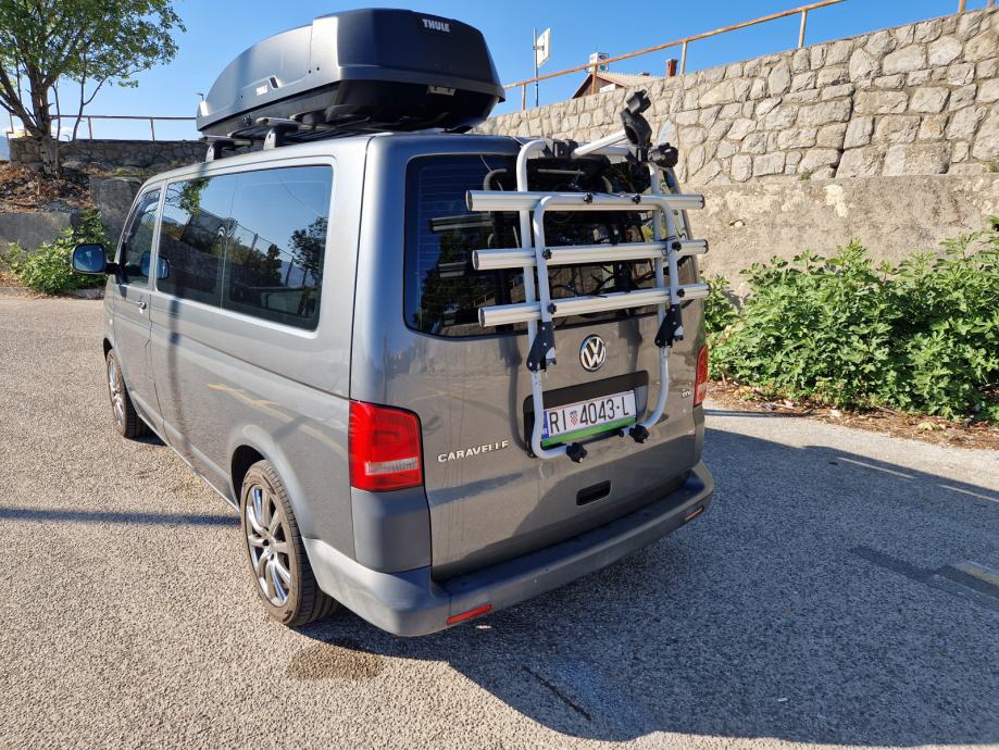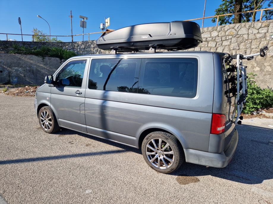 Oprema: tenda (Thule Omnistor), nosači (Thule WingBar) + krovna kutija (Thule force XT XL), nosač za tri bicikla (Menabo), konstrukcija krevet (dim. 145 x 200) + ladice.