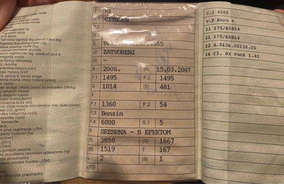 C3 , odjavljen, drugi vlasnik, motor nije ispravan. Auto se nalazi na Peljescu