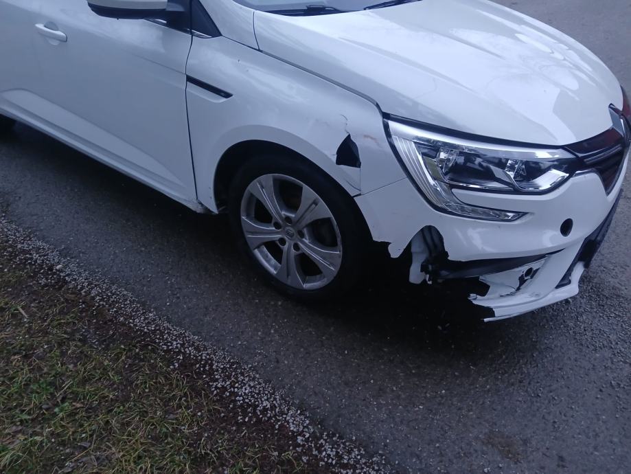 Na vozilu oštećen prednji branik, blatobran I prag, iskocili zracni jastuci , vozilo u voznom stanju , reg do kraja 2.mj