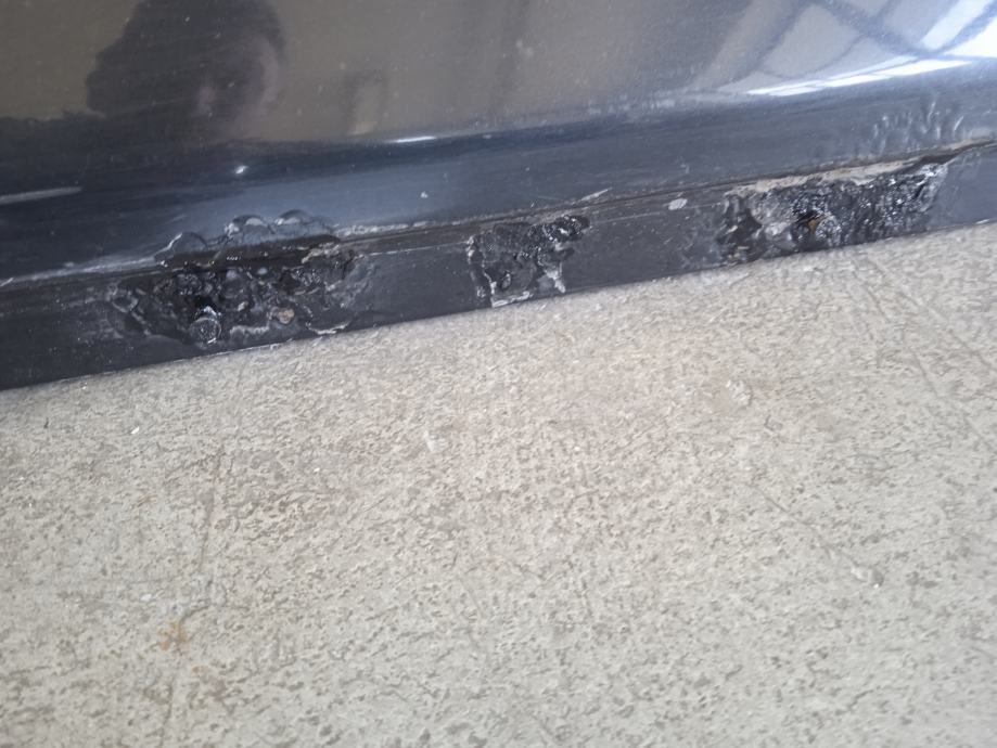 Kao što je vidljivo na fotografaijama izvana na dnu ispod donje ukrasne lajsne ima malo površinske korozije, inače su vrata bez ikakvog oštećenja, nema nikakve udubine niti ogrebotine.