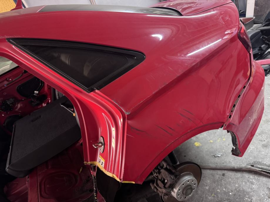 ostecen samo prednji dio do vrata, iza kod branika sve citavo (na slici se cini udubljeno)
