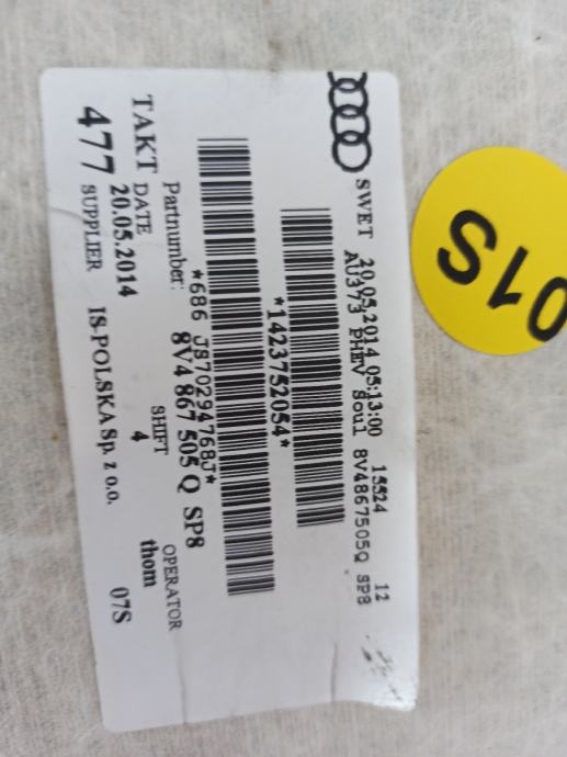 AUDI A3 8V SPORTBACK *** KROVNA CRNA OBLOGA *** 8V4867505Q SP8 ***
