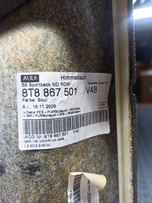 AUDI A5 8T SPORTBACK *** KROVNA OBLOGA CRNA *** 8T8867501 V48 ***