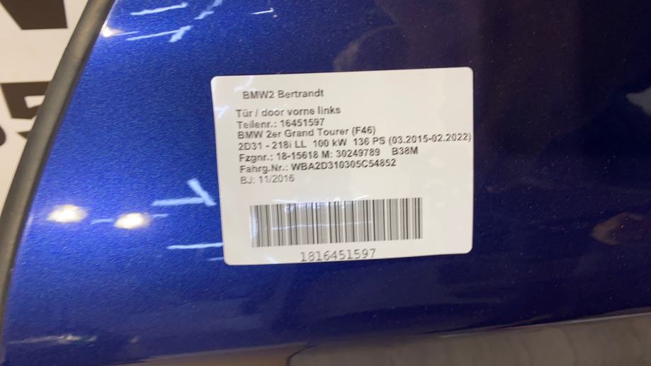 BMW 218i F46 prednja ljeva vrata boja plava C10 9389310 7298825