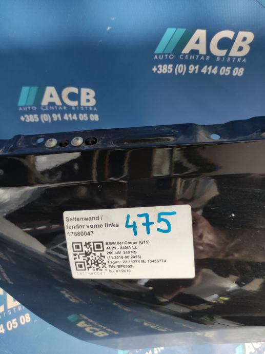 BMW 8 G15 - Blatobran lijevi (boja 475)