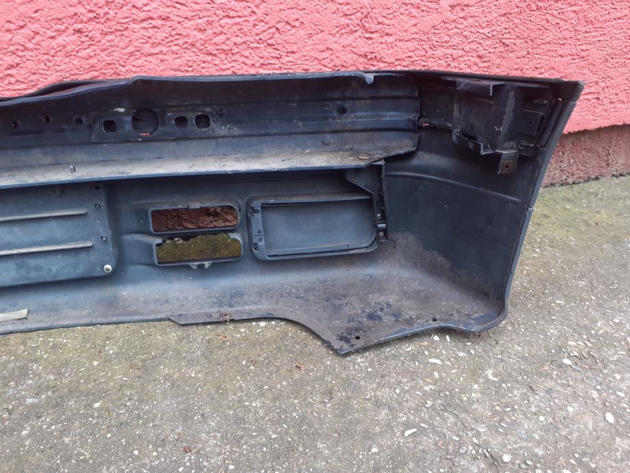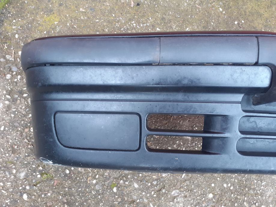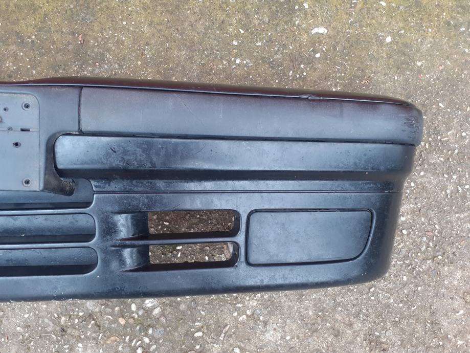 Prodajem prednji branik za BMW e36. Bio je na limuzini (paše i na sve ostale izvedbe) iz 1995. godine i u vrlo dobrom je stanju, bez oštećenja, uz vidljive tragove korištenja, pogotovo ispod od nogostupa, ležećih itd. Boja je cosmosschwarz metallic (303). Prodaje se kompletan branik sa svime (nosači, lajsne, poklopci maglenki) ili po dogovoru, cijene raznih kombinacija su niže navedene. Dolazi u kompletu sa originalnim šarafima i maticama. Sve original BMW.