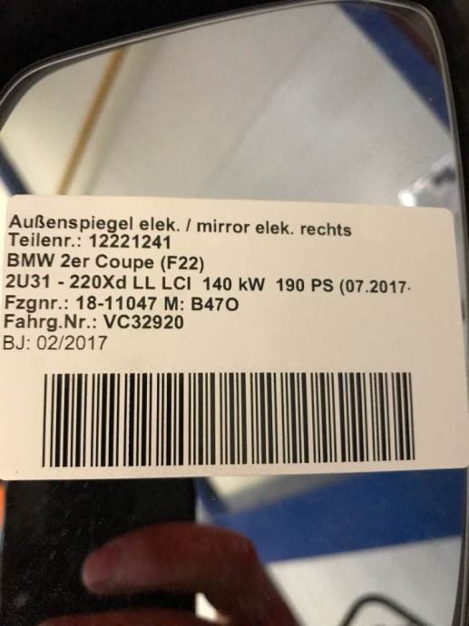 Prodajemo idealni retrovizor za BMW F22 220xd Coupe