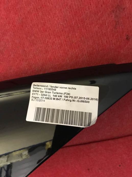Prodajemo prednje blatobrane za BMW F34 Gran Turismo