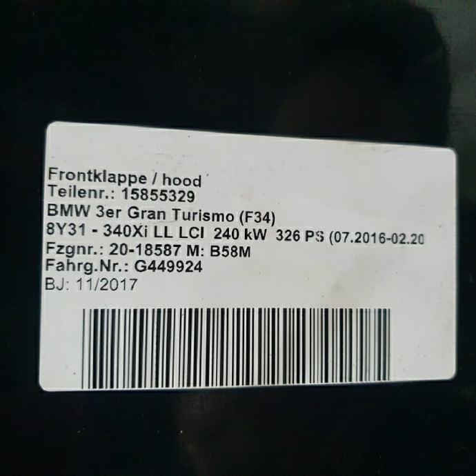 F34N 340iX Gran Turismo B58 Europe N L 1 Engine hood/mounting parts