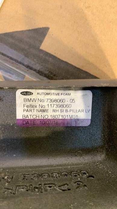 BMW X3 G01 RIGHT SIDE B PILLAR SOUND INSULATOR INSERT FOAM PAD 7398060