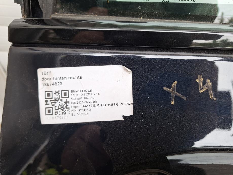 Zadnja desna vrata za x4.vrata su kompledna 400s ,moze i prodaja pojedinih djelova sa njiĥ.staklo .podizač.lajsne.gume .kvake.brave .lajsna .cjena pojedinih djelova po 50e.