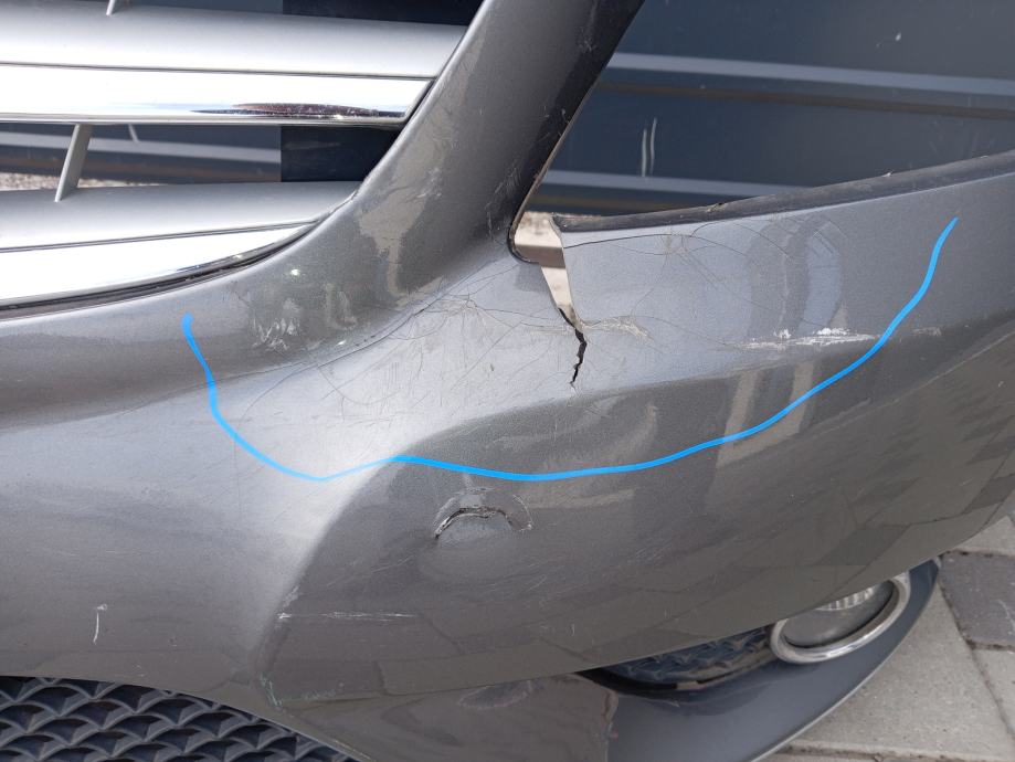 Prednji branik za Mercedes B klasa 2013/ Oštećenje vidljivo na slici.