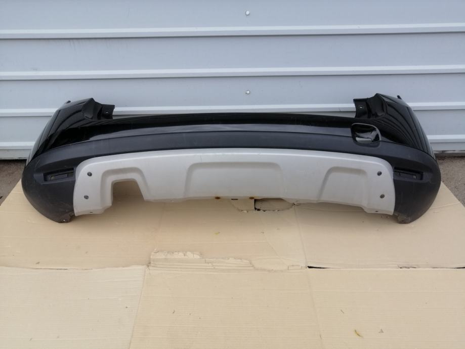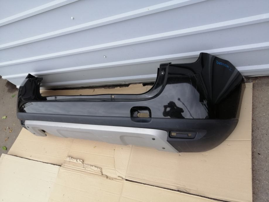 Branik stražnji, zadnji za Dacia Duster, bez otvora za parking senzore, u crnoj boji sa mat- srebrnom lajsnom