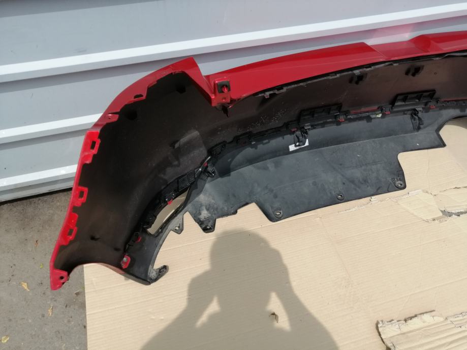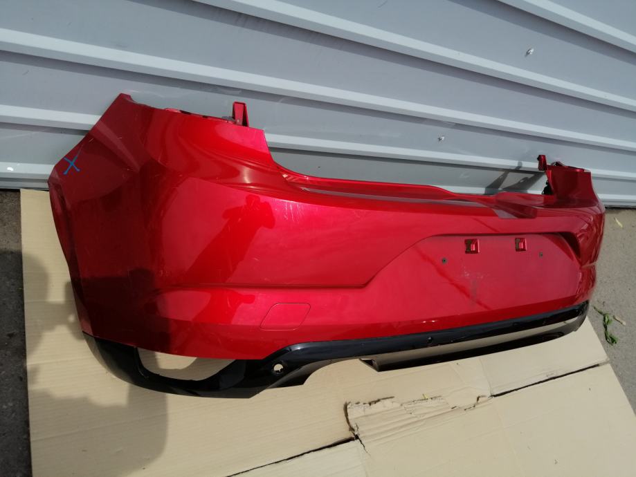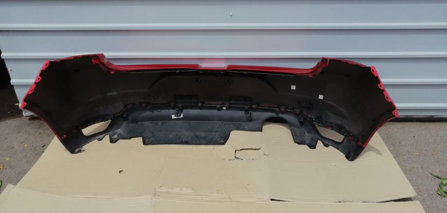 Branik stražnji, zadnji za Renault Megane IV (5 vrata model - hatchback), u crvenoj boji, 4 otvora za parking senzore u donjem dijelu branika